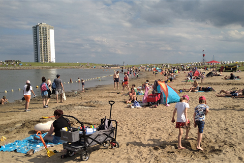 geräten und viel Platz zum Buddeln, eine neue Dünenlandschaft, Volleyball- und